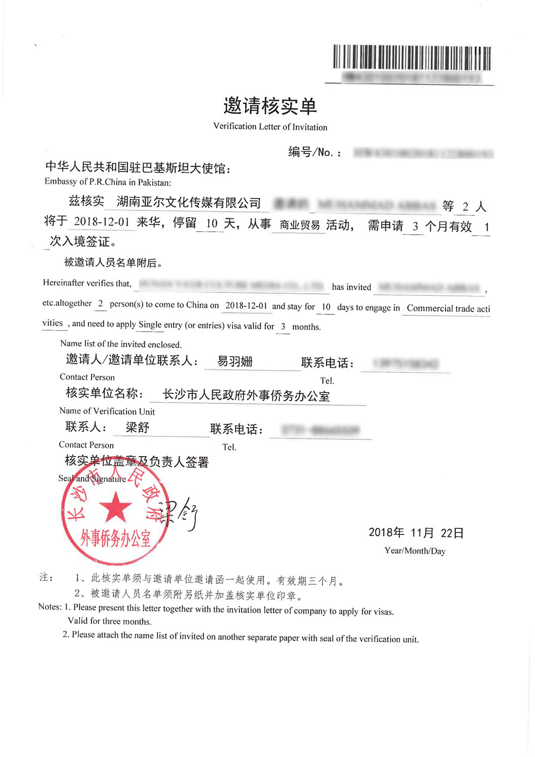 INVITATION LETTER FOR CHINA BUSINESS VISA